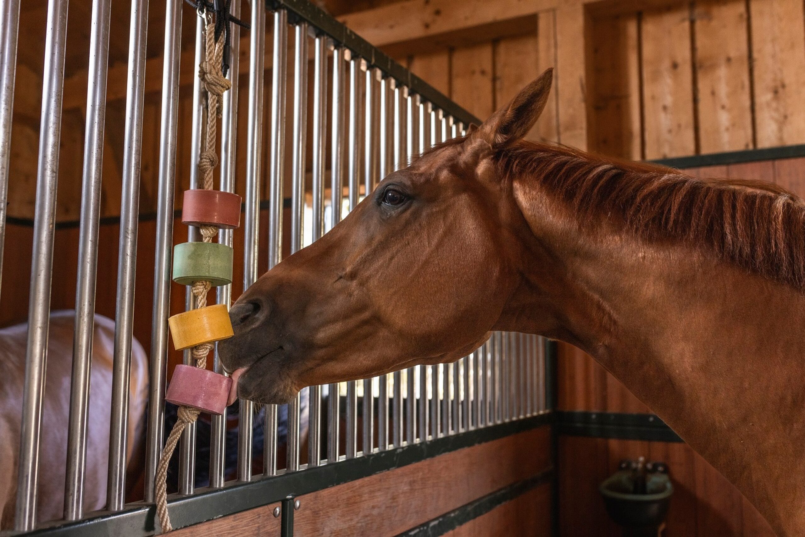 Ons ophangtouw is veruit de meest natuurlijke en flexibele oplossing om jouw paard meer afwisseling te bieden met onze Lolly-Licks!